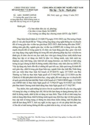 Văn bản số 1493 của Sở Giáo dục ban hành ngày 07/11/2025 về việc hướng dẫn, quản lý học sinh sử dụng điện thoại, thiết bị thông minh và máy tính cầm tay trong các cơ sở giáo dục