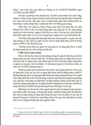 Văn bản số 1493 của Sở Giáo dục ban hành ngày 07/11/2025 về việc hướng dẫn, quản lý học sinh sử dụng điện thoại, thiết bị thông minh và máy tính cầm tay trong các cơ sở giáo dục